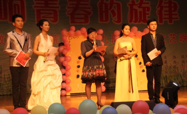 本网讯(通讯员:窦梅朋)又到商花烂漫时,追寻着八周年的足迹,商学院九周年庆典如约而至。2013年5月13日晚,商学院九周年大型文艺晚会在校大礼堂盛大开幕。莅临本次晚会的嘉宾有商学院行政副院长邵玲、团总支书记窦梅朋、商院各班辅导员以及各二级学院代表等。