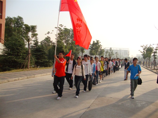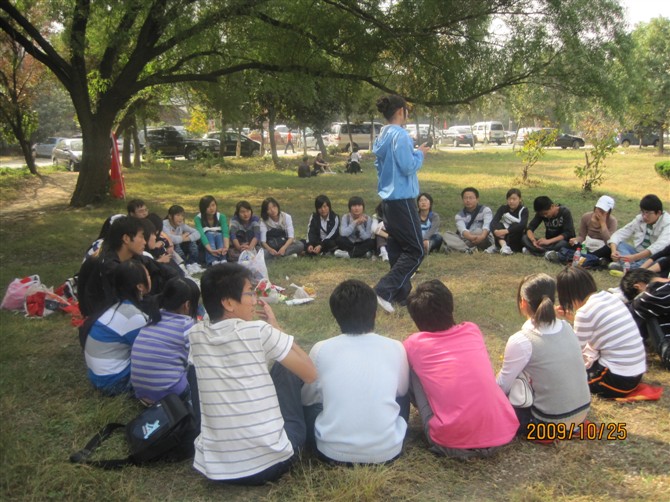 7点30,商学院团总支学生会这只庞大的队伍浩浩荡荡的向大蜀山进军了。一路上我们这支队伍不时引来旁人的注目。在08级部长的带领下,大家兴致昂扬地唱起了《团结就是力量》、《朋友》等歌曲。每个人的脸上都露出了好奇与兴奋的神情。抵达大蜀山后,我们进行了分组游戏,有“穿越激流”、“钻电网”、“找宝藏”、“心灵之旅”等游戏。最令人惊叹的是,平时看上去很严肃的部长们这时都活跃了起来,他们充分发挥了自己的幽默细胞,把大家逗的捧腹大笑,游戏的氛围温馨而又热闹,没有隔阂,没有压抑,有的只是那一份属于家人间的和谐。最令人瞠目结舌的是各个小组的口号和队名,例如部长的队名叫“敢死队”,口号“为了祖国的明天,冲啊!”。最搞笑的莫过于“心灵之旅”的惩罚规则,男生除了做20个俯卧撑外,还要抱着树大喊“对不起,我错了!”这个游戏中不少部长也被偷偷的拍下来了留做纪念喽!