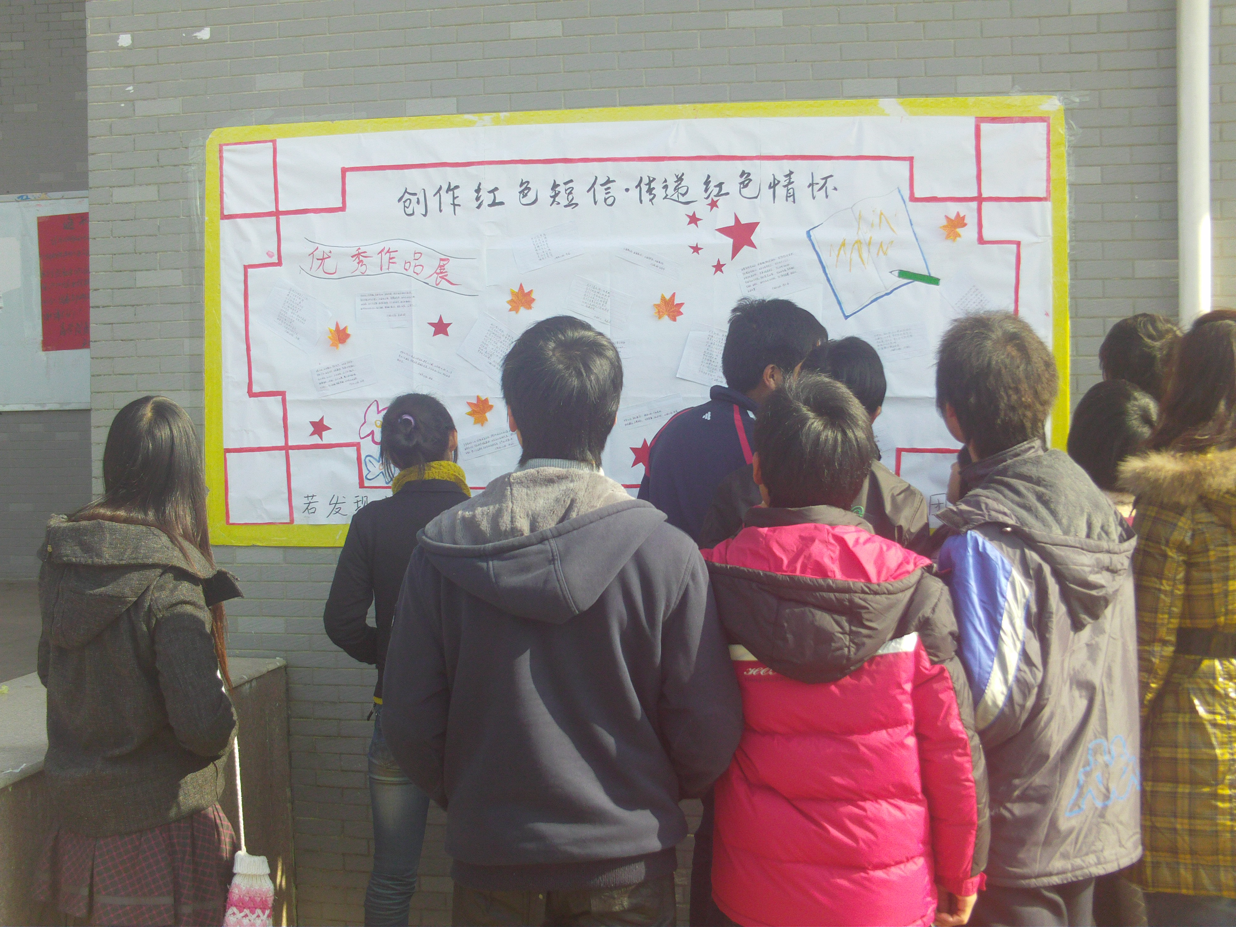 本次活动由商学院党总支主办、商学院院长助理团承办。商学院的党员及入党积极分子踊跃参加,12月20日至12月24日短短四天的红色短信征集时间就收到了近200份参赛作品。这些参赛作品内容有歌颂祖国的、有拥护共产党的、有祝福党国的,发人深省、积极进取。最终,由商学院党员老师从这些作品中选出了19份优秀作品作为获奖短信。12月27日,商学院院长助理团负责将获奖作品于商学院南门展出。这些作品语言精炼、格调清新,文字通俗易懂、朗朗上口,具有较强的思想性、知识性和趣味性,吸引了众多学生的观看。