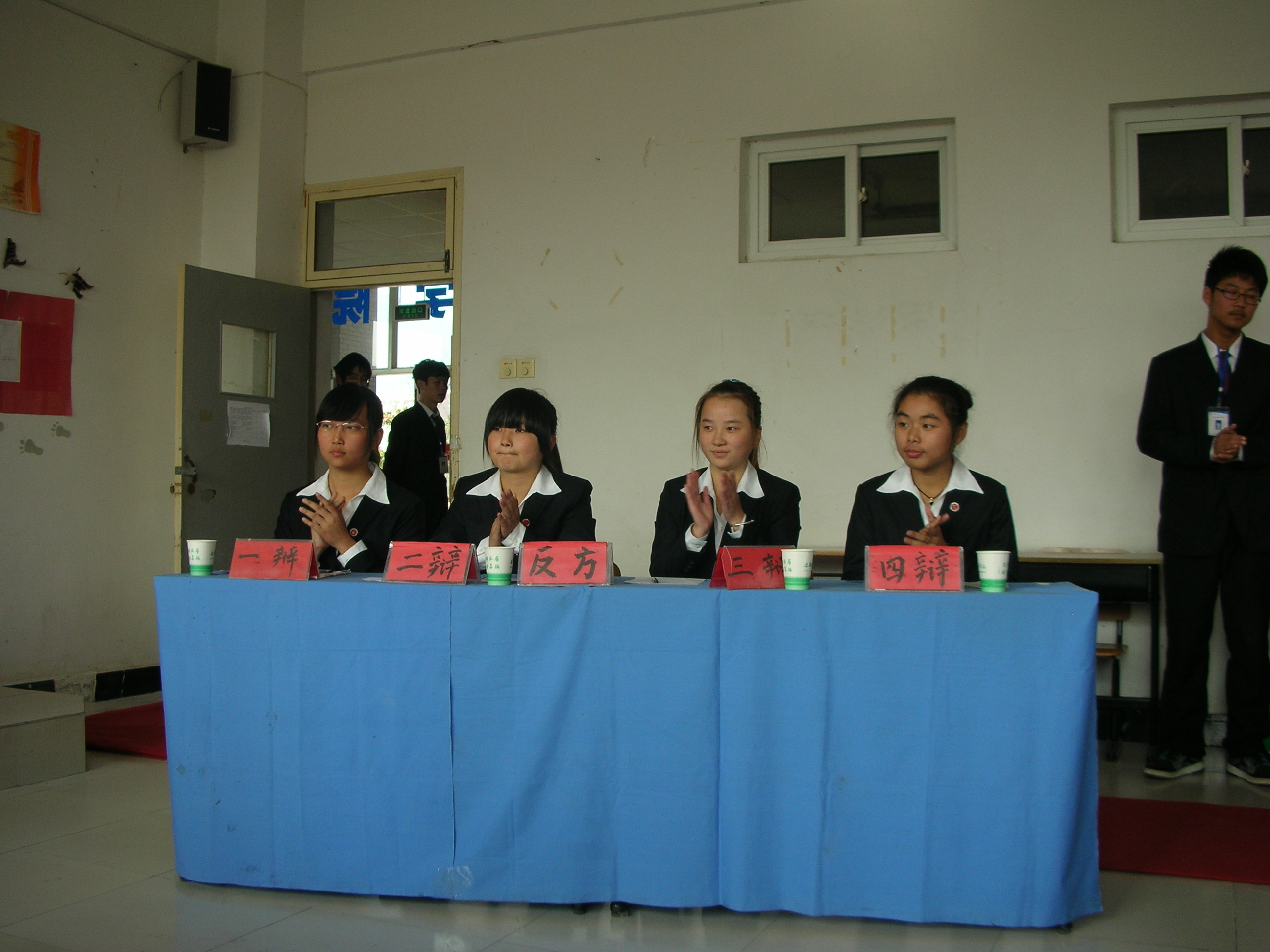 整场比赛在紧张而活泼的气氛中进行,辩论过程有条不紊、井然有序,共分为“开篇立论”、“攻辩”、“自由辩论”、“总结陈词”四个环节。双方辩手才思敏捷,妙语连珠,针对对方所提出的问题查找纰漏与反击,双方你来我往,互不相让,自由辩论环节将比赛推向高潮。正方辩手慷慨激昂地陈述了自己的观点,并进行充分论述;反方辩手毫不示弱,措辞准确,思维敏捷,抓住对方的漏洞巧妙反驳,用自己绝妙的语言把对方驳得哑口无言,赢来阵阵欢呼与掌声。